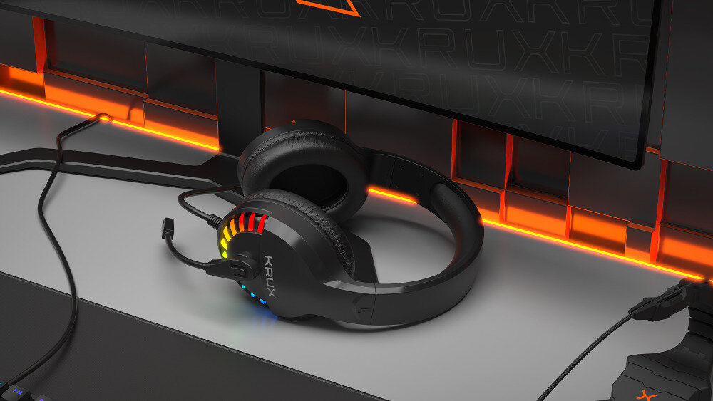 Wygląd to niezwykle ważny element słuchawek gamingowych. W słuchawkach KRUX Fizz RGB KRX0092 zastosowane zostało efektowne podświetlenie RGB umieszczone po bokach.