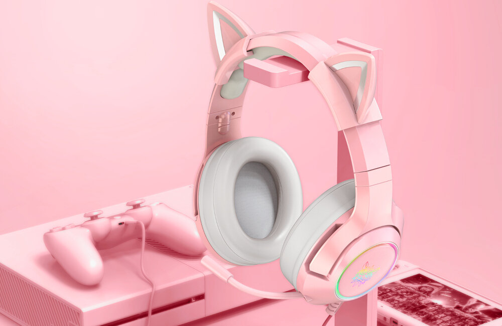 - Słuchawki ONIKUMA K9 Kocie Uszy RGB Nauszne, Dźwięk przestrzenny Różowy