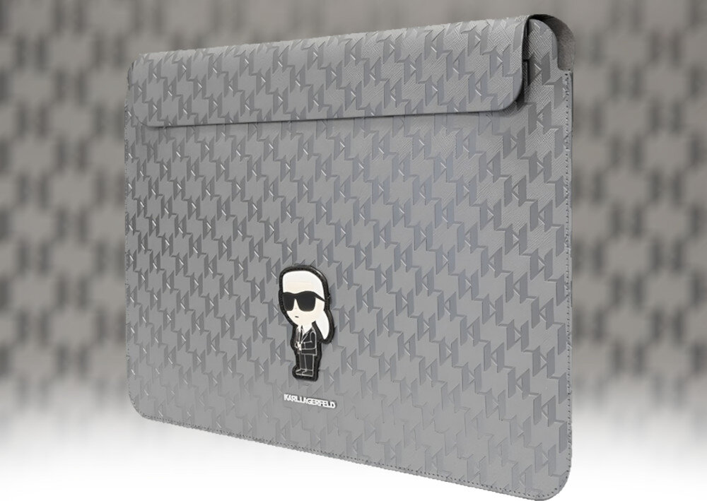 - Torba na tablet KARL LAGERFELD Saffiano Monogram Ikonik 14 Srebrny