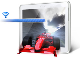 Teraz możesz bez ograniczeń i opóźnień korzystać z mobilnych multimediów dzięki imponującej szybkości transmisji, która znacznie przyspiesza pobieranie plików. Technologia HSDPA+ jest o trzy razy szybsza, znacznie skracając czas oczekiwania – nie zdążysz się zniecierpliwić, czekając na pobranie ulubionych multimediów. Technologia Wi-Fi Channel Bonding również zapewnia szybki bezprzewodowy transfer danych dzięki wykorzystaniu dwóch połączonych ze sobą kanałów zamiast jednego. Pobieranie filmów, plików muzycznych i gier jest teraz o połowę krótsze. Krótsze oczekiwanie, większa radość – to takie proste!