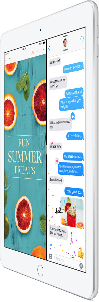 | Działa szybko i płynnie. Potężny 64-bitowy procesor A9 sprawia, że każda apka działa bez najmniejszych zakłóceń. Możesz więc bez przeszkód uczyć się z ciekawych aplikacji edukacyjnych albo grać w gry o rozbudowanej grafice. A nawet używać dwóch apek jednocześnie. Przez 10 godzin bez przerwy, bo bateria też imponuje wydajnością. |
