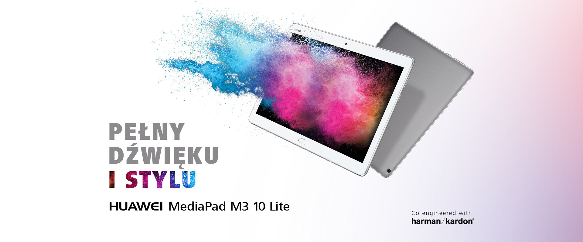 Smukły, lekki i poręczny z subtelnie zaokrągloną obudową. HUAWEI MediaPad M3 Lite 10 dostępny w szykownej szarości lub eleganckiej bieli będzie idealnym uzupełnieniem Twojego stylu.
