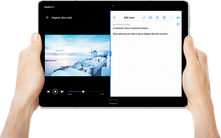 HUAWEI MediaPad M3 Lite 10 ułatwia wykonywanie codziennych czynności. Funkcja Eyecare dba o Twój wzrok gdy używasz tabletu w nocy, a czytnik linii papilarnych i kontrola gestami zabezpiecza Twoje dane. Funkcja dzielenia ekranu daje możliwość wykonywania dwóch rzeczy jednocześnie, a różne poziomy dostępów chronią Twoje dzieci przed nieodpowiednimi treściami.
