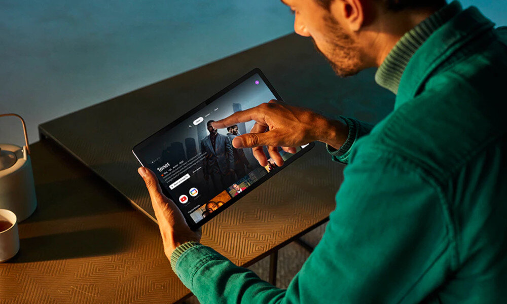Daj się ponieść strumieniowi rozrywki. LENOVO Tab P11 to tablet stworzony do oglądania multimediów dzięki efektownemu wyświetlaczowi IPS o przekątnej 11 cali i rozdzielczości 2000 x 1200 pikseli. Wąska ramka ze wszystkich czterech stron zwiększa współczynnik powierzchni zajmowanej przez ekran do 85%. Wideo można oglądać nawet pod gołym niebem w słoneczny dzień, ponieważ ekran działa z jasnością 400 nitów.