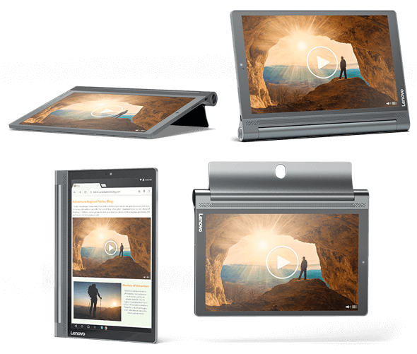 najwyższy komfort oglądania Sprawdzaj przepisy w trakcie gotowania, przy jedzeniu czytaj wiadomości z mediów społecznościowych, a podczas ćwiczeń oglądaj film. Innowacyjna konstrukcja tabletu Yoga Tab 3 Plus z cylindrem baterii i podstawką umieszczonymi z boku przesuwa środek ciężkości urządzenia, umożliwiając nowe sposoby korzystania z niego: można go postawić, położyć, trzymać w dłoni i powiesić. |