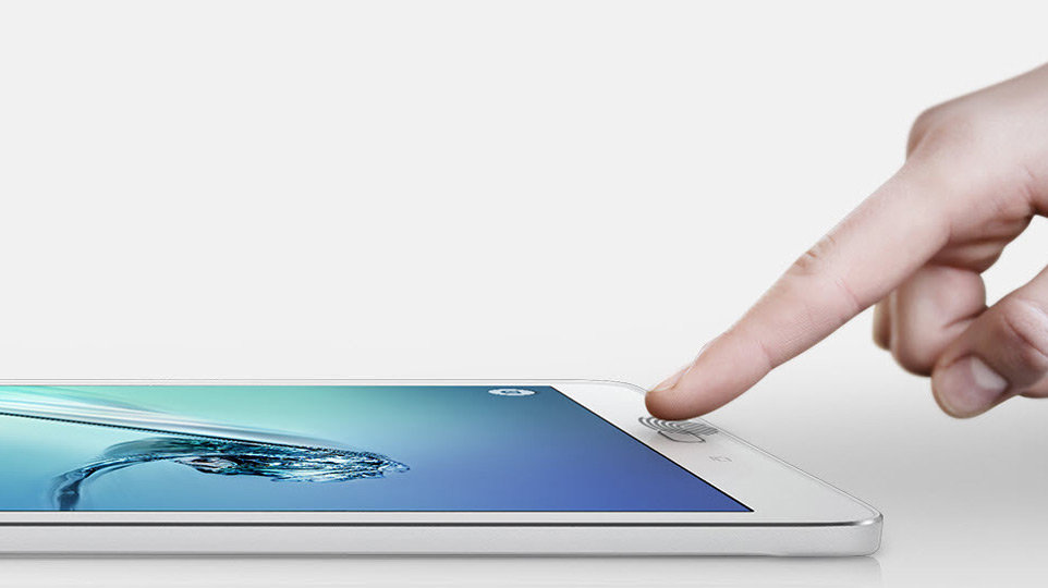 | Większe bezpieczeństwo Wygodny i precyzyjny czytnik linii papilarnych dodatkowo zabezpiecza Twój tablet. Blokadę aktywujesz wciskając główny przycisk. Użyj odcisku palca, aby zablokować/zezwolić na korzystanie z przeglądarki internetowej, trybu blokady ekranu oraz uzyskać dostęp do konta Samsung. |