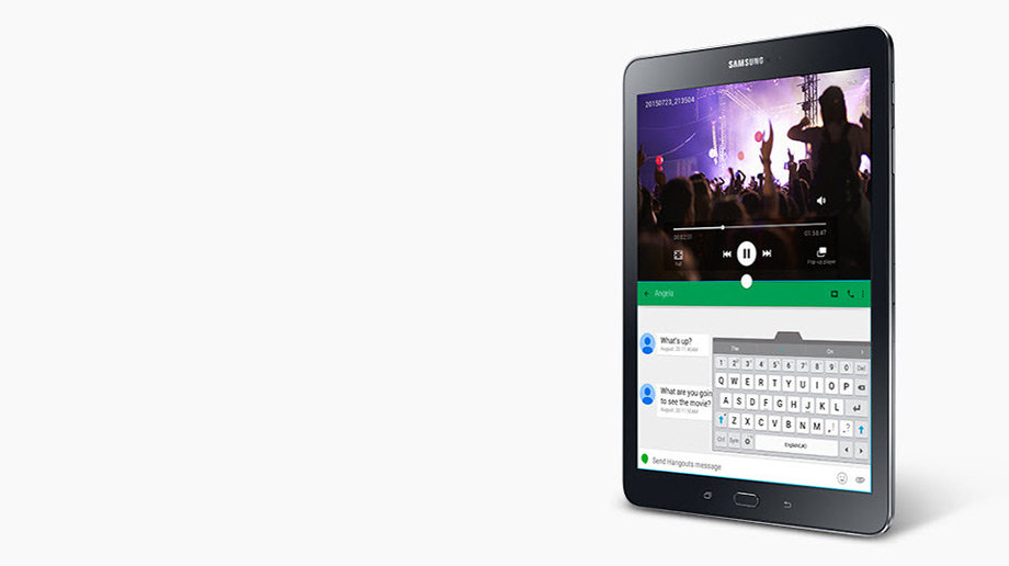 Płynna wielozadaniowość Wykorzystaj w pełni wielozadaniowość Galaxy Tab S2. Oglądaj filmy w jakości HD podczas przeglądania cyfrowego czasopisma, czytania e-booka lub korzystania z internetu. Używaj kilku aplikacji jednocześnie na podzielonym ekranie lub w przeciągalnych okienkach. |