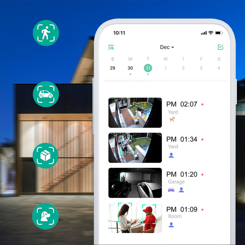 Kamera Rock CG6 posiada niezwykle rozbudowany moduł technologii AI. Z jego pomocą możesz inteligentnie monitorować dane pomieszczenie, czy swój ogród. Aplikacja Rock Home umożliwia dodanie odpowiednich reguł, z których pomocą kamera będzie mogła automatycznie rozpoznawać twarze, zwierzęta, czy pojazdy. Dodatkowo możesz również oznaczać specjalne strefy aktywności, z których będziesz otrzymywać notyfikacje. Czujnik ruchu PIR monitoruje okolicę w czasie rzeczywistym, po wykryciu ruchu w danej strefie wysyłane są alerty w czasie rzeczywistym, co pozwoli Ci na natychmiastową interwencję, jednocześnie sprawiając, że nie musisz stale sprawdzać aplikacji.