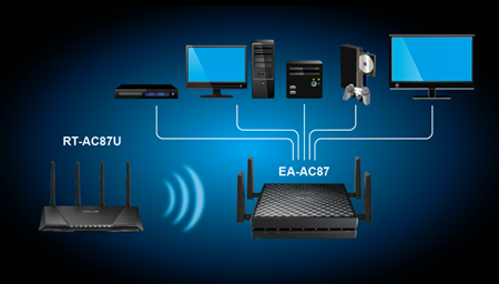 Tryb mostka do mediówEA-AC87 jest zgodny z każdym urządzeniem z interfejsem sieciowym Ethernet, w tym z telewizorami, odtwarzaczami multimedialnymi, konsolami do gier i komputerami. Połącz EA-AC87 z ruterem RT-AC87U, by uzyskać szybkości Wi-Fi wyższe niż po kablu przy mniejszym bałaganie i najwyższej wydajności z wieloma urządzeniami dzięki nadchodzącej technologii MU-MIMO. Dodatkową wygodę zapewnia Wi-Fi Protected Setup (WPS), dzięki któremu urządzenia bezprzewodowe podłącza się łatwo i bezpiecznie jednym naciśnięciem przycisku. |