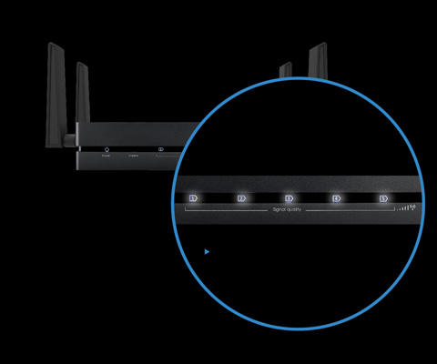 Znajdź bez trudu najlepszy odbiór sygnału Wi-FiW trybie Media Bridge diody LED z przodu EA-AC87 pokazują jakość sygnału 5 GHz, toteż z łatwością możesz dopasować umiejscowienie rutera albo EA-AC87, by cieszyć się najlepszym odbiorem Wi-Fi. |