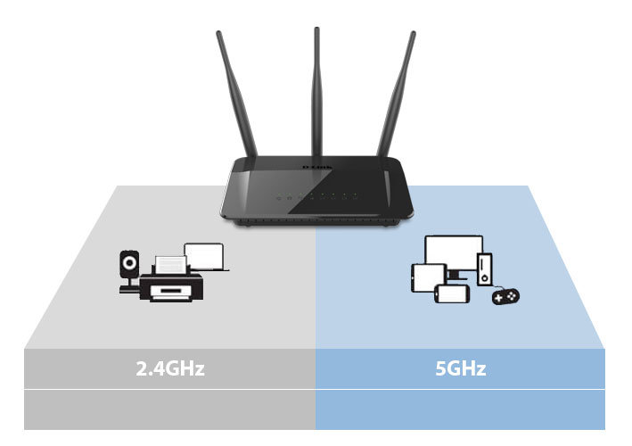 Dwuzakresowy router Wi-Fi DIR-809 Wireless AC750 korzysta z najnowszej technologii szybkiej transmisji bezprzewodowej, oferując przepustowość do 433 Mb/s w paśmie 5 GHz oraz do 300 Mb/s w paśmie 2,4 GHz.