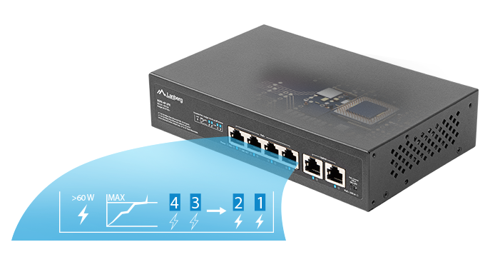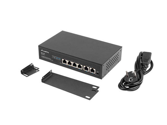 - Switch LANBERG RSFE-4P-2FE-60 Fast Ethernet, 6 portów, Funkcja PoE
