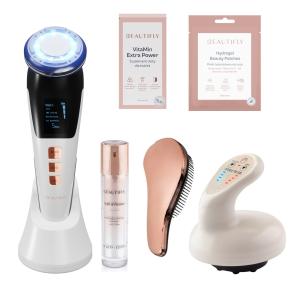 Zestaw BEAUTIFLY Urządzenie do mezoterapii bezigłowej B-Glossy PRO + Wyszczuplający masażer ręczny antycellulitowy B-Modello, bańka masująca + Szczotka do włosów Combo Złoty + Krem Night of Pleasure 50 ml + Płatki pod oczy Hydrogel Beauty Patches 2 szt. + Suplement diety Vitamin Extra Power (30 szt.)