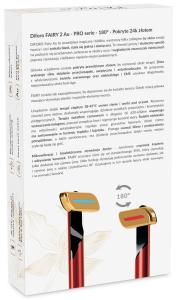 DIFORO Fairy 2 ProSeries to urządzenie do profesjonalnej pielęgnacji skóry twarzy, szyi, dekoltu i dłoni w domowych warunkach. Łączy mikroprąd, terapię światłem czerwonym i niebieskim, masaż wibracyjny, emisję ciepła oraz masaż jonami złota. Ta kompleksowa terapia skutecznie wygładza zmarszczki, poprawia elastyczność skóry, redukuje nierówności i odmładza skórę, pozostawiając ją miękką, gładką oraz pełną witalności.
