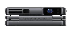 Składana konstrukcja Tri-Fold działa intuicyjnie — projektor sam przyjmuje stabilną pozycję i automatycznie dopasowuje geometrię obrazu, eliminując potrzebę ręcznej regulacji.