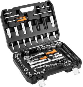 Ten zestaw kluczy nasadowych NEO TOOLS 10-215 sprawdzi się podczas pracy w warsztacie samochodowym, serwisie przemysłowym oraz w domowych naprawach.