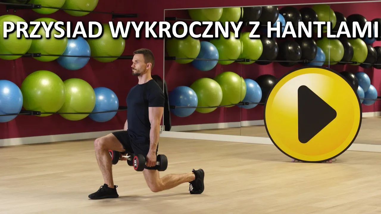 Przysiad wykroczny z hantlami umożliwi Ci aktywizację uda oraz pośladków.