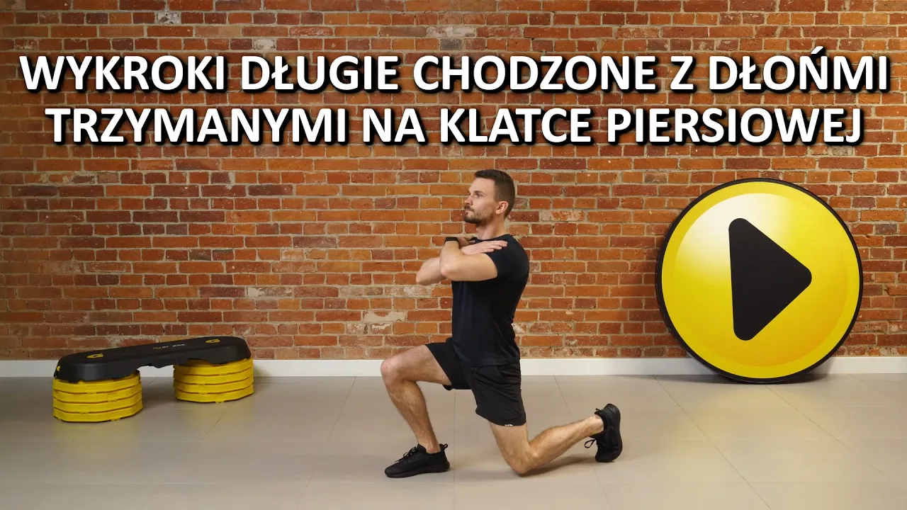 - z wydechem dynamicznie wstajemy, przesuwamy nogę zakroczną naprzód i wykonujemy kolejne powtórzenie – na każdym etapie ćwiczenia pilnujemy, aby utrzymywać poprawną pozycję ciała oraz napięcie mięśni, które zapewni odpowiednie podparcie.