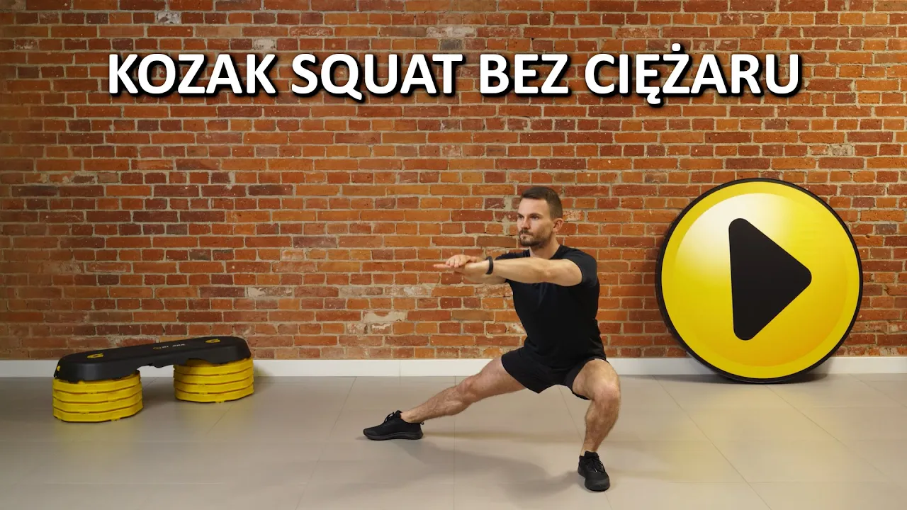 Kozak squat bez ciężaru poprawia elastyczność i mobilność bioder, a także wzmacnia mięśnie nóg i koryguje ich ewentualne asymetrie. To wspaniałe ćwiczenie angażujące wiele grup mięśniowych.