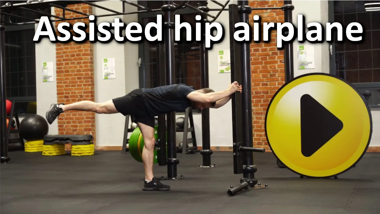 Assisted hip airplane to ćwiczenie, które znacząco poprawia mobilność bioder i aktywizuje mięśnie pośladków.