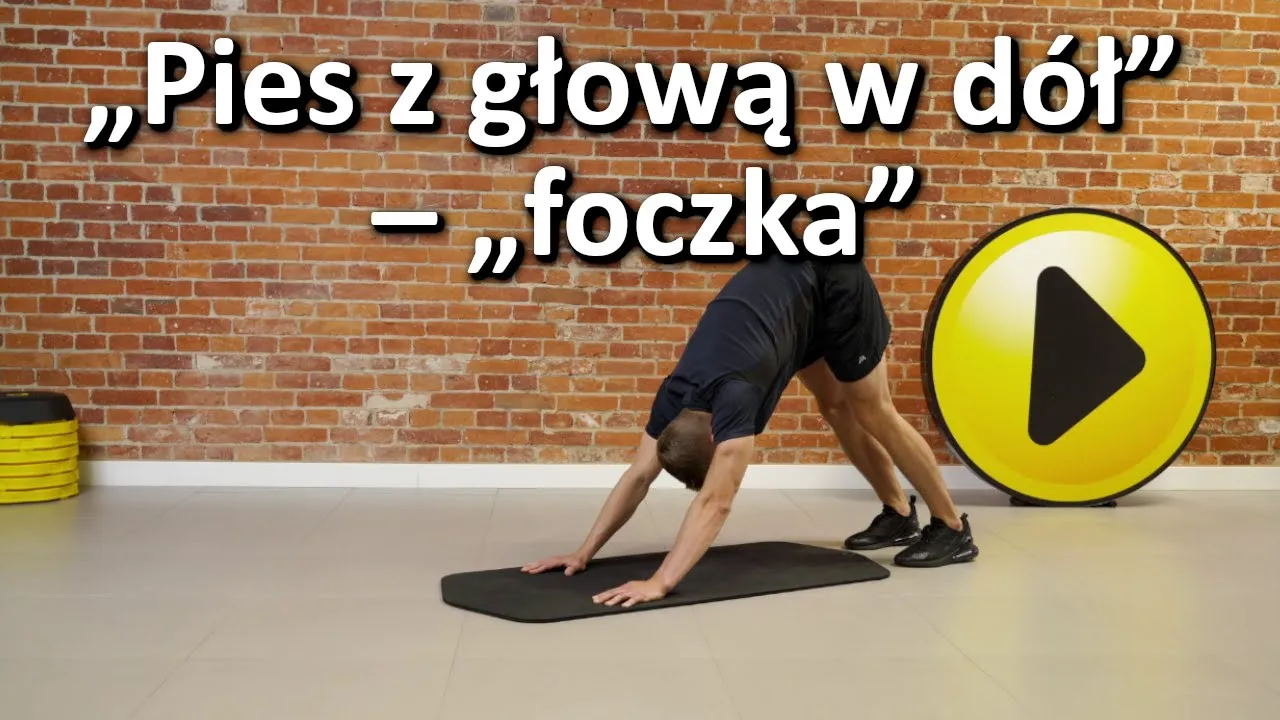 Ćwiczenie ,,pies z głową w dół” – ,,foczka” pomoże w rozgrzaniu ciała, dodatkowo zwiększając jego mobilność przed treningiem.