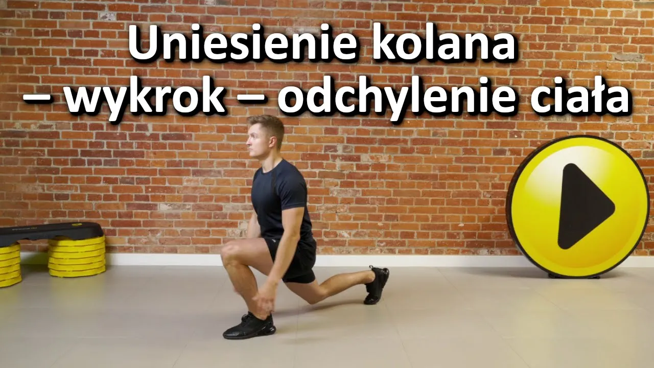 Ćwiczenie uniesienie kolana – wykrok – odchylenie ciała pomoże zwiększyć ruchomość stawów biodrowych oraz zapewni odpowiednie przygotowanie do treningu martwego ciągu.