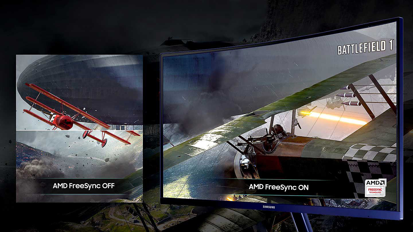 | Przyjemność z grania AMD Freesync Technologia AMD FreeSync pozwala cieszyć się niezakłóconą grą dowolnego rodzaju. Tryb Game Mode uławia optymalne skonfigurowanie ekranu dla różnych rodzajów gier, tak aby gracz dostrzegał więcej szczegółów nawet w ciemniejszych częściach scen w grach. |