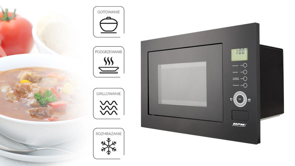Poznaj kuchenkę mikrofalową do zabudowy MPM-25-KMI-01, która jest wielofunkcyjnym i stylowym urządzeniem. Kuchenka zaspokaja wysokie oczekiwania i doskonale uzupełnia wyposażenie każdej kuchni. Wykonana jest z trwałych materiałów, z chromowanymi elementami i grillem kwarcowym. Jest idealna do gotowania, podgrzewania, grillowania i rozmrażania.
