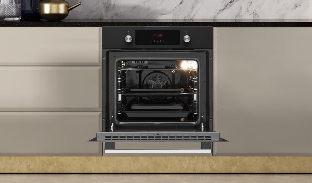 Steruj wygodnie piekarnikiem za pomocą sensorów i pokręteł, ustaw czas pieczenia, a piekarnik wyłączy się sam i poinformuje cię o tym.