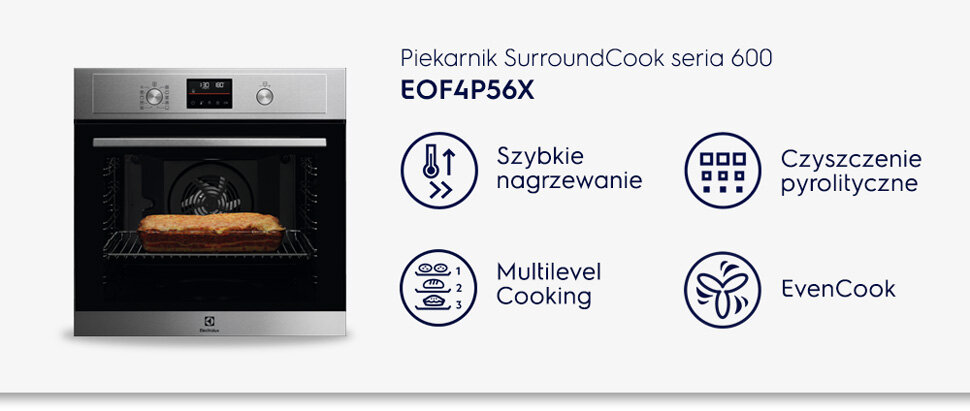- Piekarnik ELECTROLUX EOF4P56X Elektryczny Stal nierdzewna A+ Funkcja Pizza
