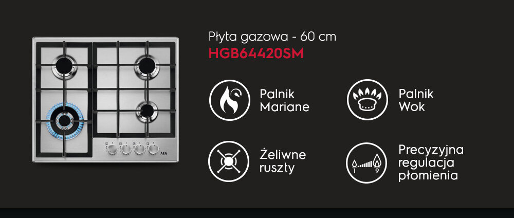 | Funkcje: | Zabezpieczenie przeciwwypływowe gazu, Palnik WOK |
