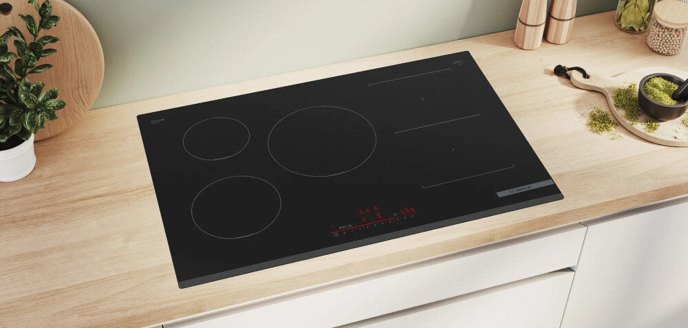 Płyta BOSCH PVW831HB1E wykonana z trwałej ceramiki w kolorze czarnym wyróżnia się bezramkową konstrukcją. Dzięki temu nie tylko jest urządzeniem bardzo funkcjonalnym, ale także charakteryzuje się stylowym designem, pasującym do każdej kuchni.