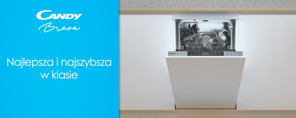 Zmywarka CANDY Brava, to urządzenie o szerokości zaledwie 44.8 cm, ale o wielkich możliwościach. Zaawansowana technologicznie, prosta w obsłudze oraz z najkrótszym na rynku cyklem mycia i suszenia, wynoszącym jedynie 39 minut.