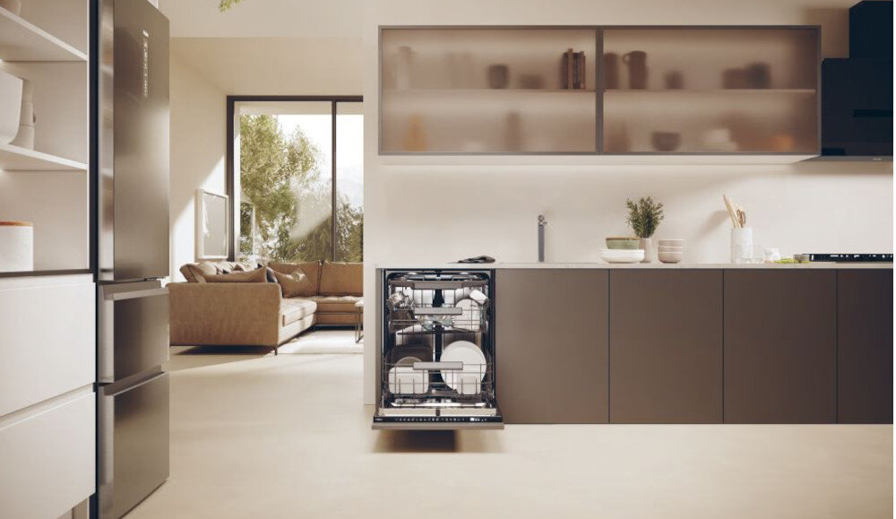 Dzięki bezproblemowej integracji z niezawodną aplikacją hOn na Twoim smartfonie oraz innowacyjnej funkcji Washing Lens, wystarczy jedno zdjęcie wypełnionych koszy naczyniami, aby sztuczna inteligencja automatycznie dostosowała najlepsze parametry mycia. To oznacza optymalne rozmieszczenie wsadu oraz wybór najbardziej wydajnego i szybkiego cyklu. Dzięki temu inteligentnemu rozwiązaniu osiągniesz doskonałe rezultaty.