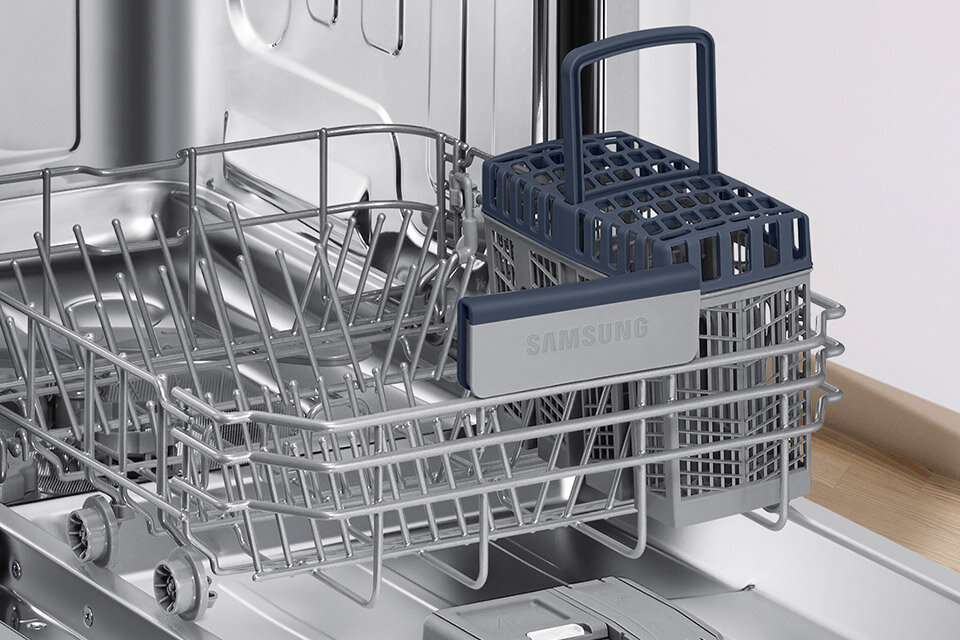 Specjalny koszyk pozwoli Ci umieścić w nim sztućce oraz przybory kuchenne. Nie musisz się martwić ich ułożeniem do mycia i suszenia.