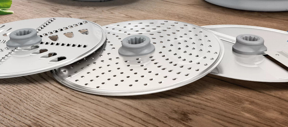 Znajdujące się w zestawie tarcze, a także mikser są bardzo proste w montażu na robocie kuchennym. Z zadaniem tym bez trudu poradzą sobie również osoby, które po raz pierwszy korzystają z dodatkowych nakładek.