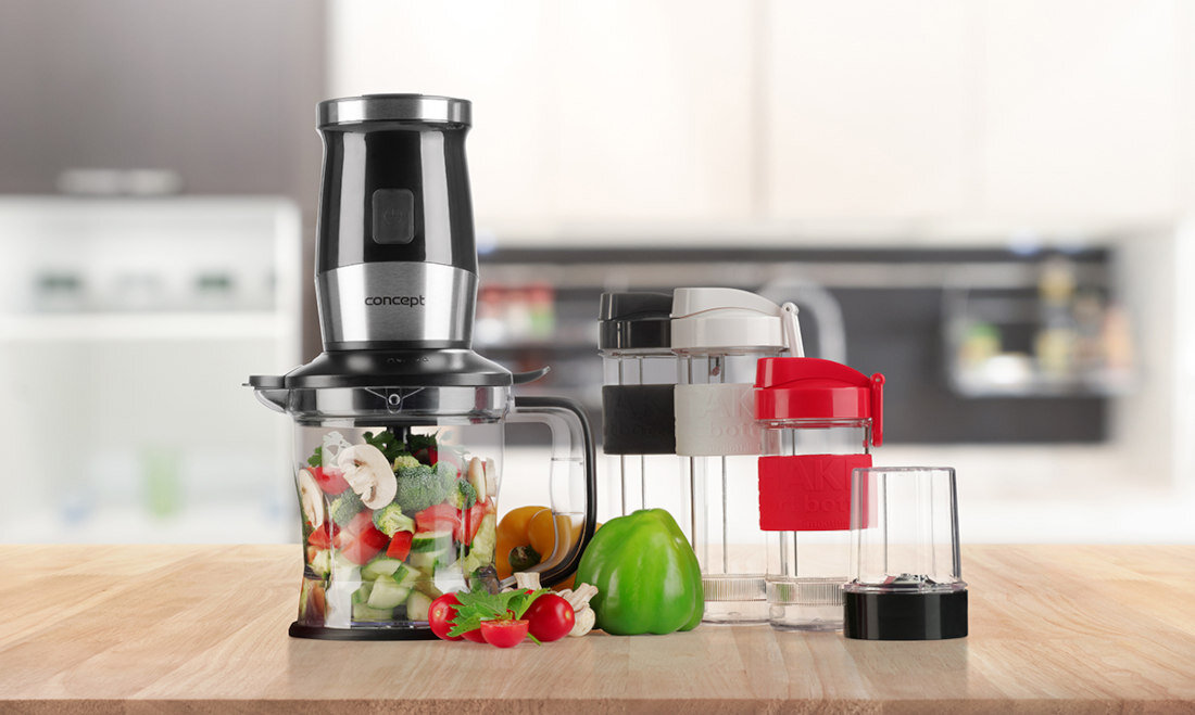 Blender kielichowy CONCEPT SM3390 gwarantuje bardzo delikatny i aksamitny koktajl, który będzie dosłownie rozpływał się na języku. Z jego pomocą przygotujesz błyskawicznie nie tylko smoothie, ale także dziecięce kaszki i mnóstwo innych przekąsek.