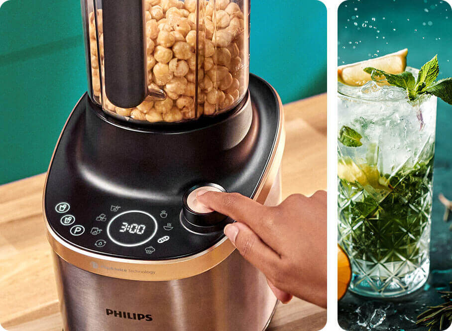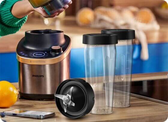 Blender 2w1 z funkcją sokowirówki Flip&JuiceHR3770/10 | ProBlend ChefBlenderwysokoobrotowy HR3760/00 | |