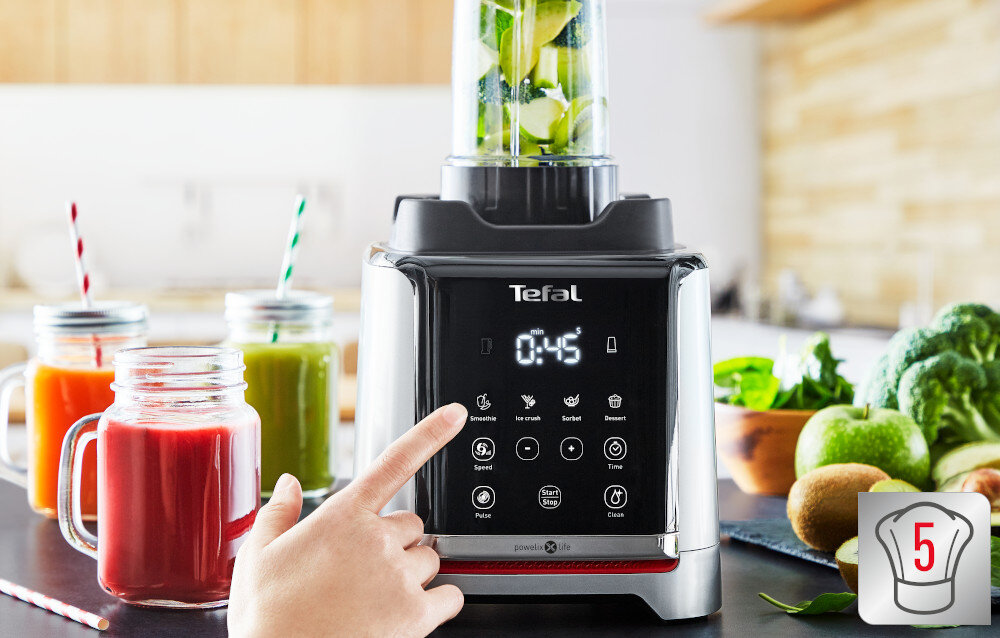 Ciesz się szeroką gamą przygotowywanych potraw, dzięki 5 automatycznym programom. Prędkość i czas blendowania można również kontrolować manualnie. Osiągnij doskonałe rezultaty w mgnieniu oka, dzięki potężnemu silnikowi (35 000 obrotów na minutę) i ogromnej mocy 1600 W.