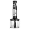 Zestaw zawiera dodatkowe akcesoria: pojemnik 500 ml z nożem ze stali nierdzewnej do rozdrabniania i siekania, przystawka miksująca ze stali nierdzewnej przystosowana do pracy w wysokiej temperaturze, przystawka do ubijania piany oraz pojemnik 700 ml.