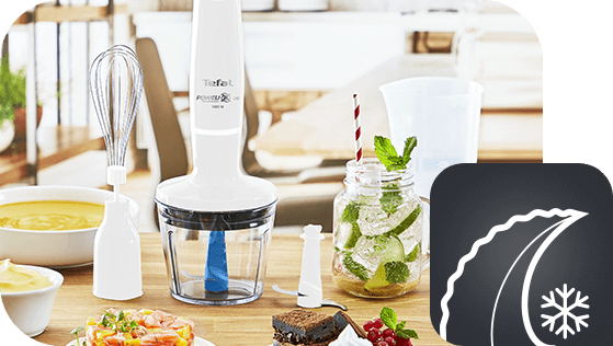 Blender ręczny Tefal Infinyforce Pro posiada uchwyt z technologią płynnej zmiany prędkości. Naciskając na przycisk możesz płynnie zwiększać prędkość miksowania, odpowiednio do rodzaju składników.