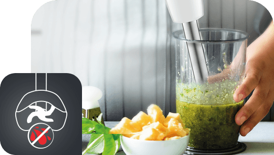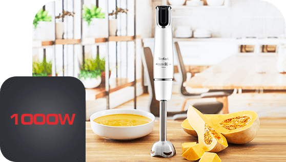 Blender ręczny Tefal Infinyforce Pro posiada uchwyt z technologią płynnej zmiany prędkości. Naciskając na przycisk możesz płynnie zwiększać prędkość miksowania, odpowiednio do rodzaju składników.
