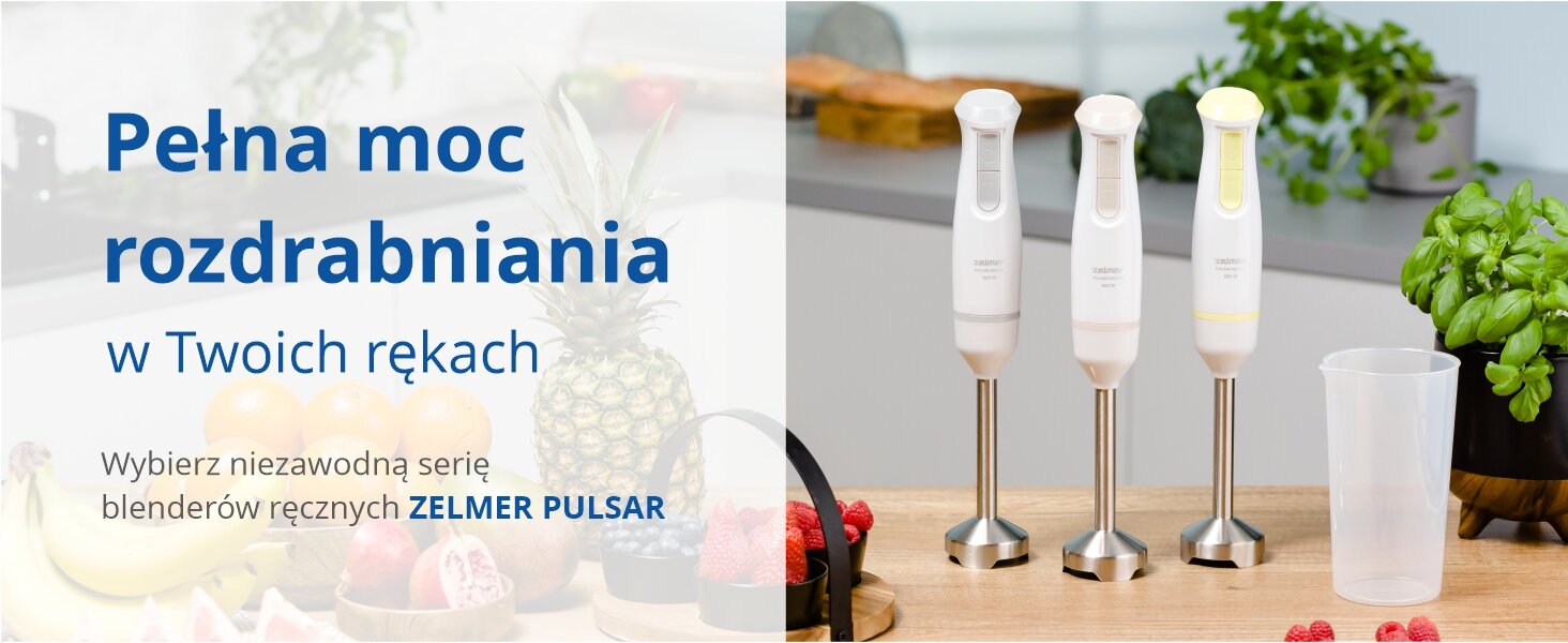 Blendery ręczne stają się coraz bardzie popularne w polskich kuchniach. Nasze urządzenie ZHB4561S Pulsar Deluxe jest wyposażone w silnik o mocy 800 W z funkcją Turbo, dwa ostrza ze stali nierdzewnej i zdejmowaną stalową stopę. W zestawie znajdziesz kubek z miarką. Ergonomiczna obudowa blendera zapewnia pewny uchwyt, dzięki któremu przygotowywanie codziennych posiłków stanie się dla Ciebie szybkie i łatwe.