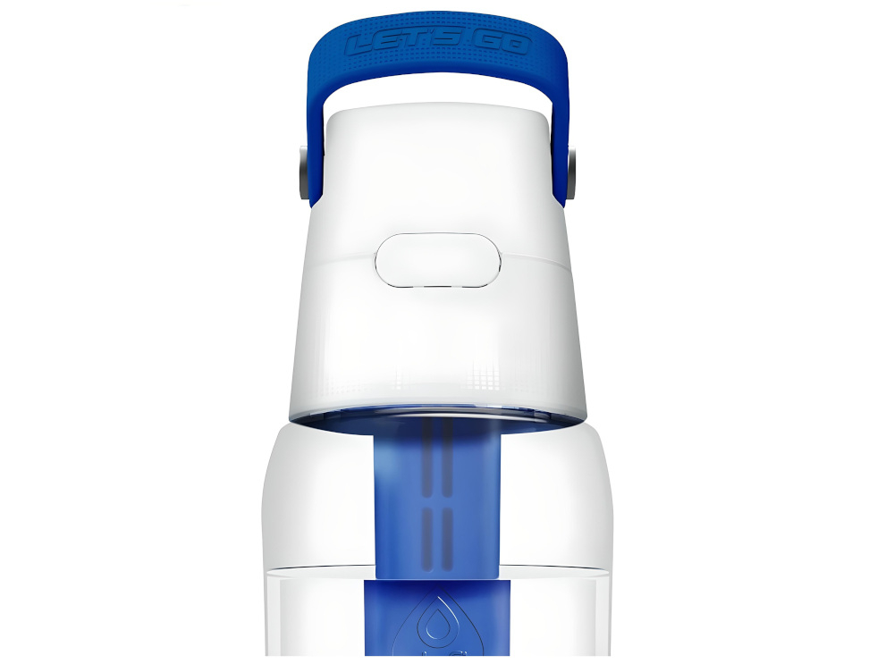Poręczna butelka wielokrotnego użytku wyposażona jest w wymienny co miesiąc filtr węglowy (100% naturalne medium filtrujące wytwarzane z łupin orzecha kokosowego). Usuwa on z wody kranowej nieprzyjemny smak i zapach chloru. Pozostawia niezmienioną ilość minerałów naturalnie w niej występujących (głównie wapnia i magnezu), dzięki czemu woda zachowuje cenne dla zdrowia pierwiastki. Lekko podwyższa pH wody, co przekłada się na jej jakość. Wykonana jest z wytrzymałego tworzywa. Jest całkowicie pozbawiona szkodliwego Bisfenolu A i dopuszczona do kontaktu z wodą na podstawie odpowiednich atestów.