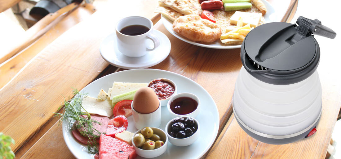 Po złożeniu czajnik ma wysokość 92 mm. Oprócz tego został wyposażony w składany uchwyt, który jeszcze bardziej zmniejsza jego rozmiar. Dzięki temu zmieści się praktycznie wszędzie i będzie Ci służył w dowolnym miejscu, w którym zawitasz.