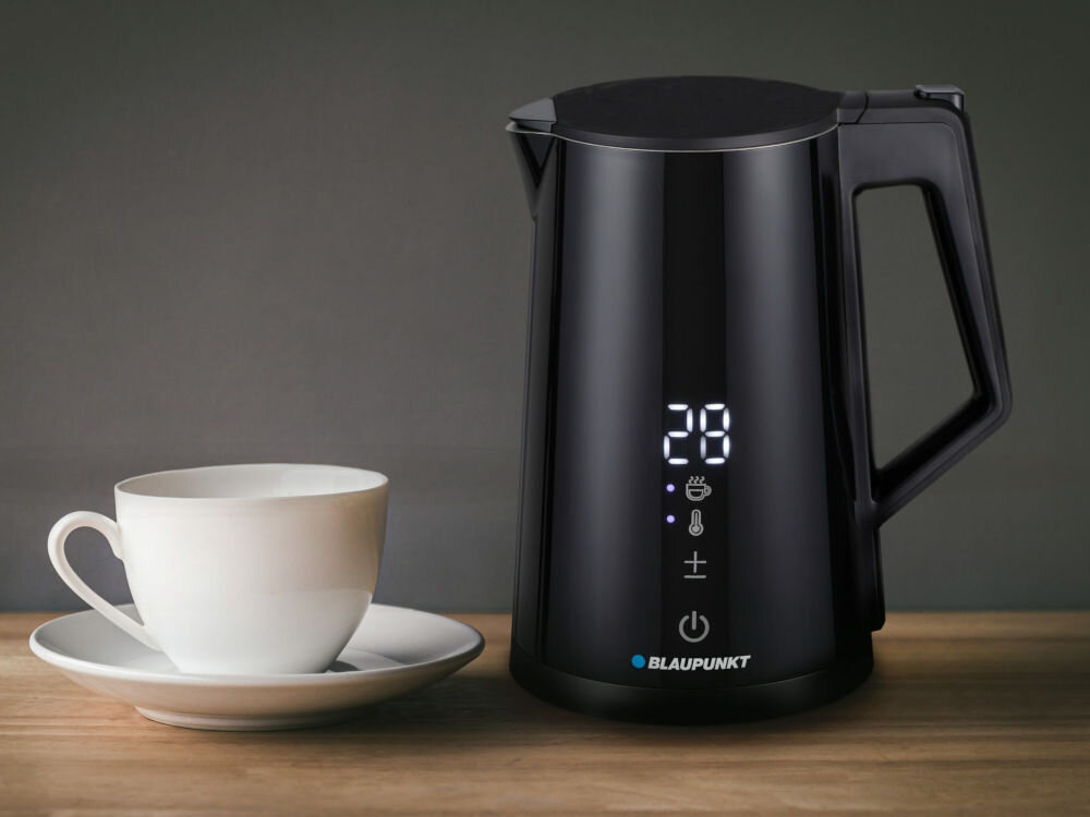 Dużym wyróżnikiem czajnika BLAUPUNKT EKD601 jest zastosowana w nim funkcja podtrzymywania temperatury w zakresie od 40 do 100°C (100℃, 90℃, 80℃, 55℃, 40℃) przez nawet do 24 h. Po zagotowaniu urządzenie kontroluje temperaturę i podgrzewa wodę, kiedy spadnie poniżej wybranej, sygnalizując osiągnięcie docelowej temperatury dźwiękiem. Duży i czytelny wyświetlacz umieszczony na ściance czajnika nadaje mu eleganckiego wyglądu, a do tego umożliwia łatwe sprawdzenie temperatury wody.
