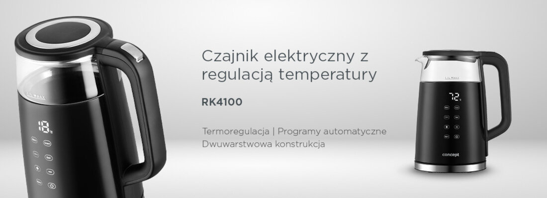 Czajnik RK4100 spełni oczekiwania najbardziej wymagających entuzjastów herbaty. Zapewnia płynną regulację temperatury w zakresie od 40°C do 100°C, umożliwiając precyzyjne ustawienia w interwałach co 5°C. Dodatkowo oferuje 4 gotowe programy, dostosowane do parzenia ulubionych herbat w zdefiniowanych, zalecanych temperaturach. Praktyczna funkcja Keep Warm pozwala utrzymać podgrzaną wodę w pożądanej temperaturze, gwarantując gotowość do parzenia w każdej chwili.
