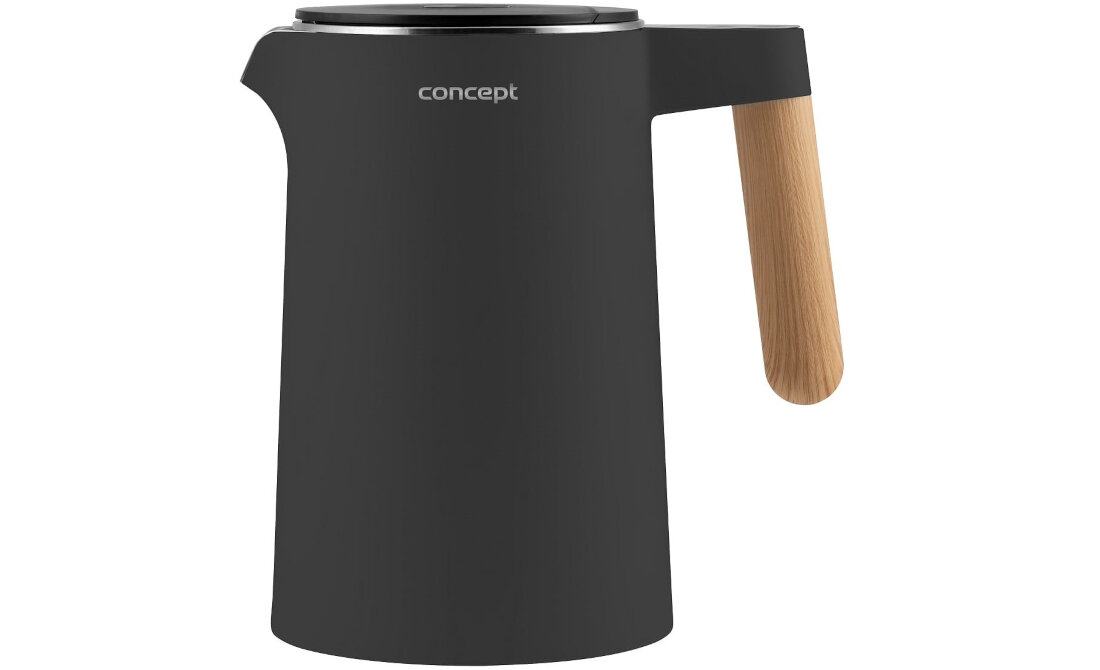 Czajnik Concept Salt & Pepper RK3302 znajdzie miejsce w każdym domu. Jego atrakcyjny wygląd podkreśla matowa, czarna obudowa osadzona na minimalistycznym podstawie, uzupełniona eleganckim uchwytem w drewnie. Dzięki pojemności 1,5 l możesz wygodnie przyrządzić w nim do 6 filiżanek swojego ulubionego gorącego napoju.
