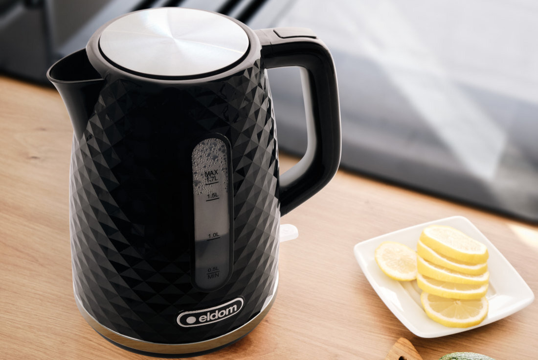 Czajnik ELDOM C280C Elli z serii Diamond Collection ma czarną obudowę wykonaną z eleganckiego tworzywa sztucznego. Zdecydowanie wyróżnia się na tle innych, konkurencyjnych urządzeń. Jest lekki, poręczny i łatwy w obsłudze. Ma obrotową podstawę, ergonomiczną zamkniętą rączkę i odchylaną pokrywę.