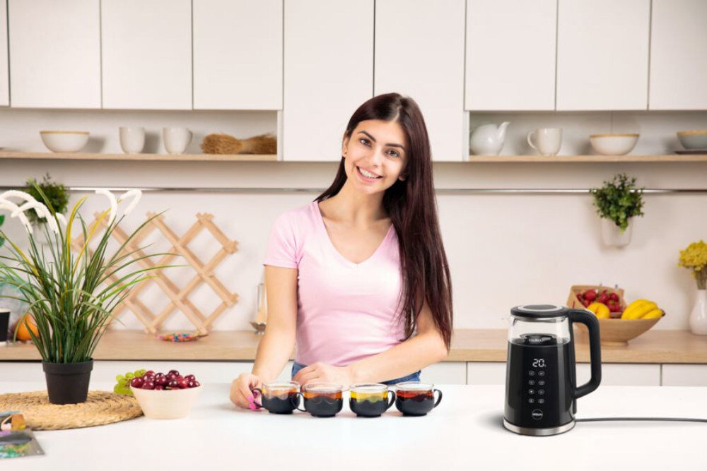 Prosty w obsłudze panel dotykowy i czytelny wyświetlacz LED zachwycają łatwą i precyzyjną obsługą czajnika. Potrójny system zabezpieczeń oraz wskaźnik poziomu wody gwarantują bezpieczne korzystanie z urządzenia.